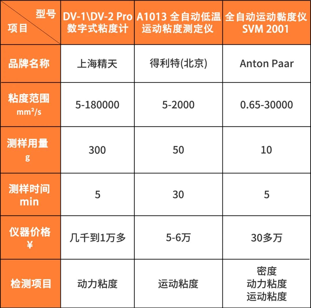 关于这三款粘度计的参数对比如下: